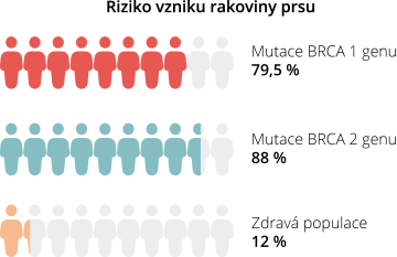 To je důvod, proč zhoubné nádory u nositelů BRCA vznikají v mnohem nižším věku než u zbytku populace. Riziko je celoživotní a nejvyšší pak mezi 30 a 50 lety. Vrozená mutace v BRCA genech znamená výrazně zvýšené riziko rakoviny prsu a vaječníku. Pravděpodobnost, že ženy se zděděnou mutací v BRCA 1 genech onemocní karcinomem prsu je 79,5 %, při mutaci v BRCA 2 genech je pak riziko kolem do 88 %. Pro srovnání v běžné zdravé populaci je riziko vzniku rakoviny prsu asi 12 %. Co se týče rakoviny vaječníku, tak zde je riziko rozvoje pro ženy s BRCA 1 mutací 65 % a pro ženy s BRCA2 mutací 37 %. V běžné populaci je riziko menší než 2 %. Ženy, které mutaci v BRCA genech zdědily a které již rakovinou prsu onemocněly, mají také vysoké riziko, že onemocnění i rakovinou druhého prsu. BRCA mutace je ale spojena s vyšším rizikem řady dalších nádorů. Jsou to zejména nádory prostaty, slinivky břišní, melanom či zhoubný nádor tlustého střeva a konečníku. Zvýšené riziko rozvoje rakoviny prsu u BRCA mutace se týká i mužů.