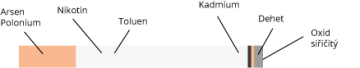 • Kouř z druhého konce hořící cigarety, tedy kouř obsahující řadu škodlivých a rakovinotvorných látek.
