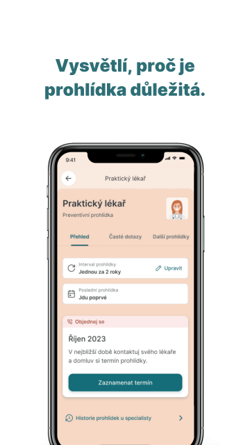 Aplikace jsou skvělé v tom, že je máš v telefonu. Spousta z nás otevře mobil stokrát denně a najednou tam na tebe kouká něco, co ti umožní jít stiskem jednoho tlačítka na preventivní prohlídku.